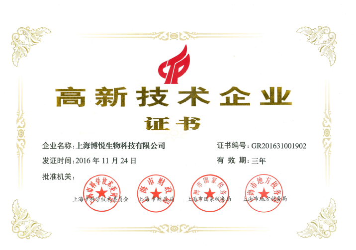 上海博悅于2016年11月獲得了國家高新技術(shù)企業(yè)的認(rèn)定稱號。